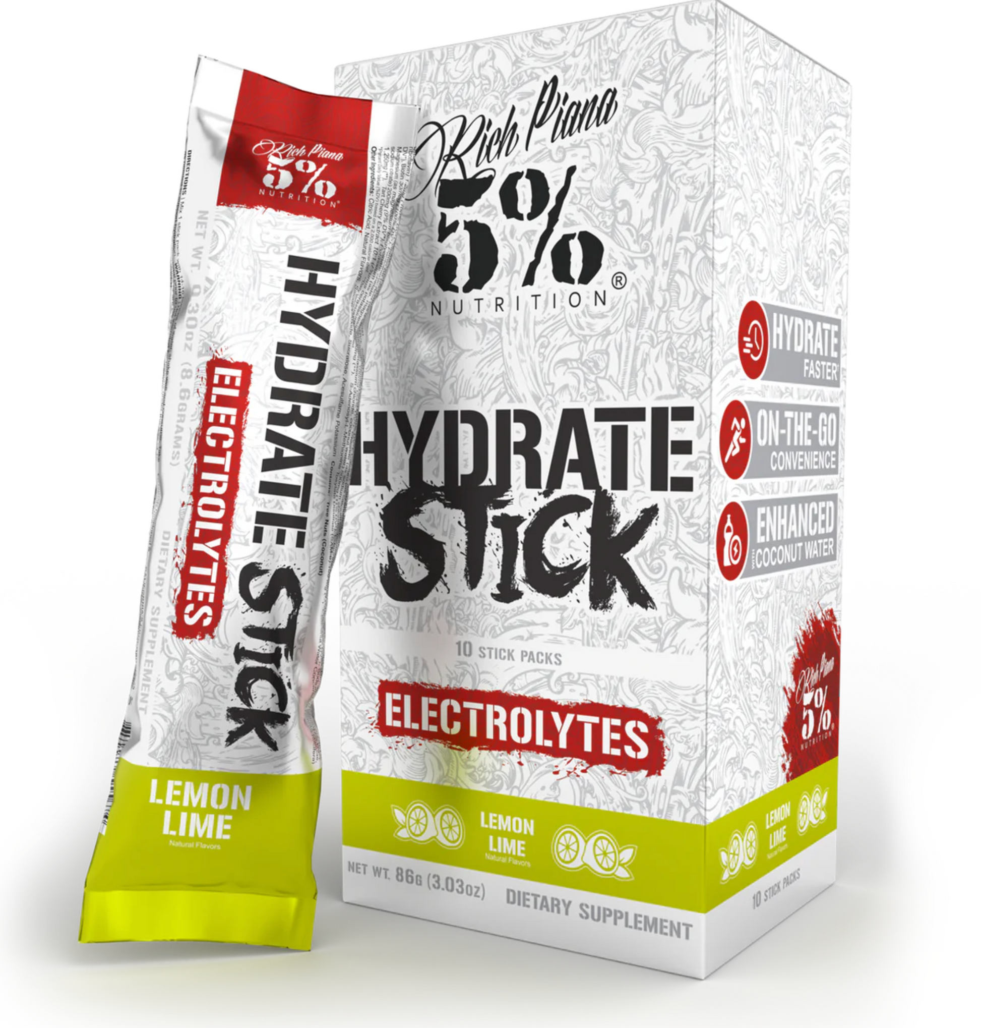 No doubt you train brutally; you’re part of the 5% Nutrition family. Did you know that water alone may not be enough to keep you hydrated? You can rehydrate faster and anytime with Hydrate Sticks. Bring a couple in your gym or laptop bag, and you’re all set!
